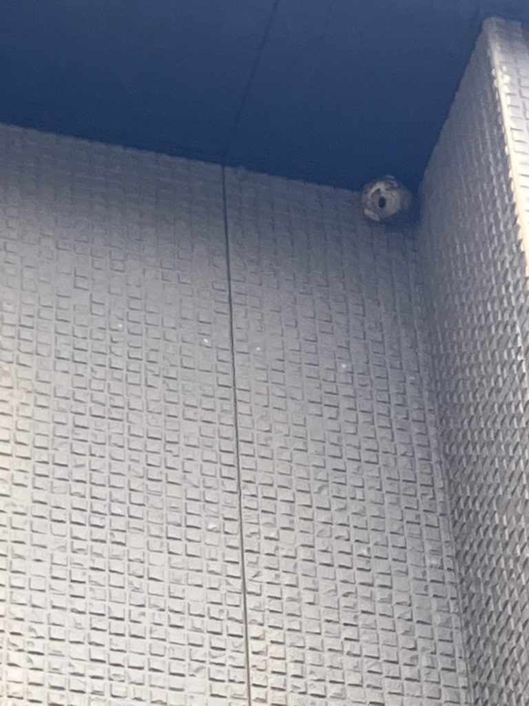 二階の軒下にハチの巣がありました。