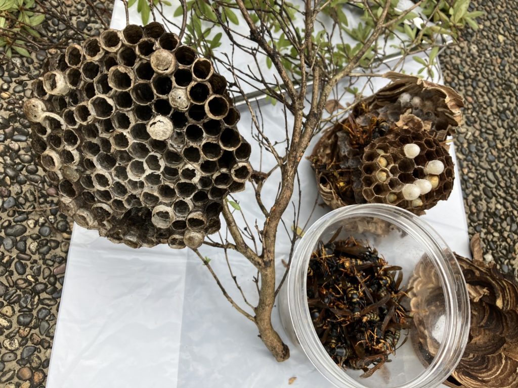 今回の岐阜市粟野台ではススメバチとアシナガバチの巣を駆除完了しております。