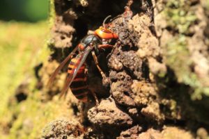 岐阜県美濃加茂市軒下のキイロスズメバチ